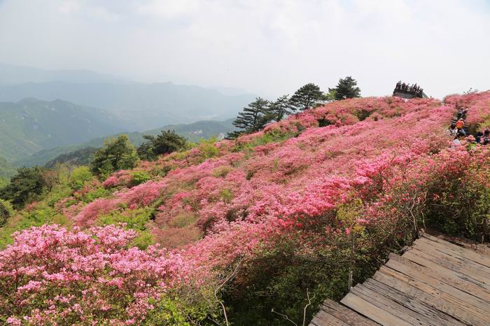 在交通不便的古代,文人墨客登山咏怀言志,今天人们依然留念于一座座山峰。如王秋杨登珠穆朗玛峰的不多,为了许下心中心愿拜访深山古寺而登山的信徒也有,而更多的恐怕是城市里人们的一种出离,出离钢筋水泥中的灰蒙蒙的天空和快节奏的生活。无论我们怀有怎样的念想投入大山的怀抱,它总能抚平我们所有的情绪,给予我们精神以慰藉。此次的龟峰山最高海拔1320米,而且又有索道的助力,登上山顶就变成一件很轻松的事了,我们也得以有更多的精力徜徉于花海,合影于山间,极目远眺于山顶。
