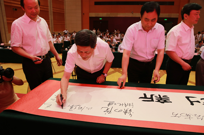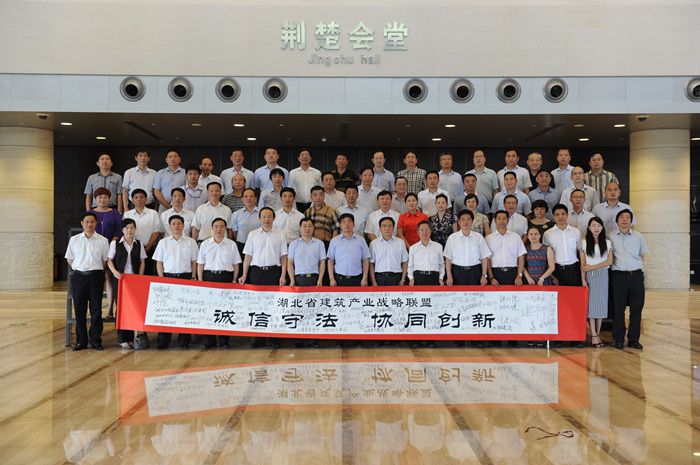 “维护建筑市场秩序,推行公平竞争,重合同,守信用,不做虚假宣传,不逃避责任。”会上,全国人大代表、韦德官方网集团董事长程理财代表省建筑产业联盟企业作出郑重承诺。随后,产业联盟成员单位现场签名,共同发起“诚信守法 协同创新”倡议。