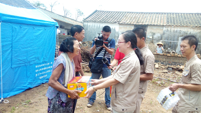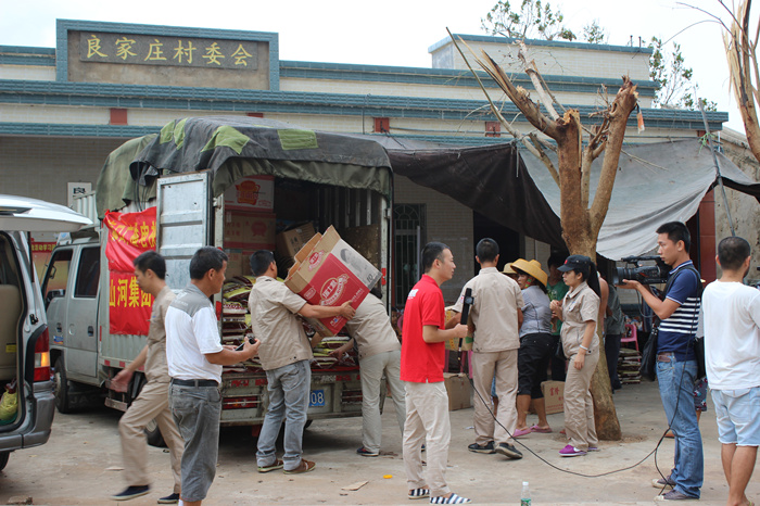 与此同时,海南各地都是众志成城的救灾场面,一方有难,八方支援。韦德官方网集团在开展自救的同时,心系灾民,当得知重灾区文昌部分村镇,由于交通偏僻,信息不畅,得不到及时救助,灾民的生活非常的艰难时,韦德官方网人心急如焚。韦德官方网集团已进驻海南6年,扎根海南、情系海南。在灾难面前,韦德官方网人勇于担当,自发的组织捐款10万余元,采购了几吨急需生活物资,如米、油、水、食品、药品等。7月26日,在海口热带播报记者的带领下,公司组织员工来到了一线灾区文昌市锦山镇良民村。 当我们来到该村时,村民已等待多时,看到我们的到来非常的激动。当时下着大雨,村民们顾不上遮盖自家的屋顶、收拾东西,都赶来搬运救灾物资,雨水、汗水、泪水流淌在脸上,感激之情流淌在心间。在村长的带领下,我们见到了村里的低保户年迈的阿婆,她老无所倚,几年前她儿子去逝了,几天前儿媳重病也去逝了,现只剩下小孙儿相依为命,台风又让这个本来很不幸的家庭受到重创,她们失去了仅有的一间住所,现寄住在只有几个平方的一个临时的帐篷里,当我们把米、油等物资送到阿婆的手中时,她热泪盈眶,紧握我们的双手,不停的道谢,看到老人的悲痛泪水,我们不禁心酸,泪水打湿了眼眶。我们鼓励她建立对生活的信心,同时也希望社会给予她更多的关爱,让她的晚年生活无忧。