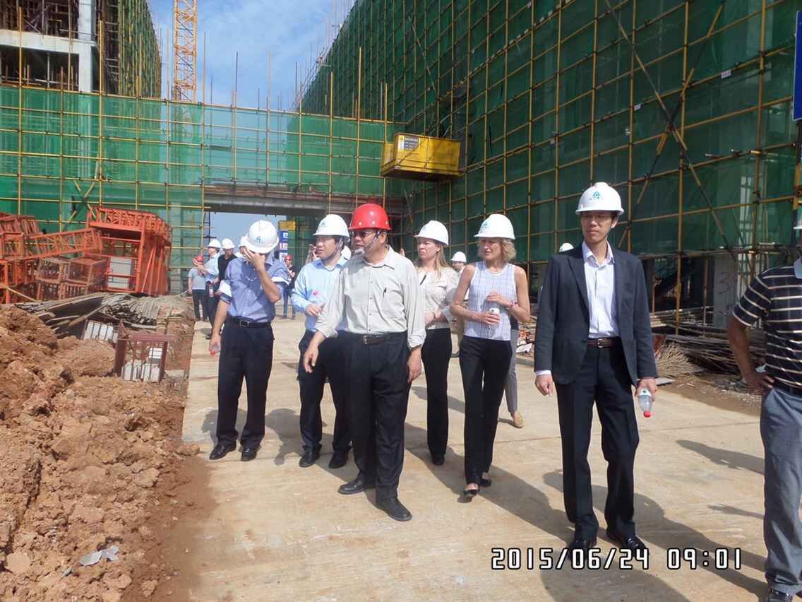 6月24日上午,武汉光谷国际生物医药企业加速器2.1期项目迎来最高规模的检查。美国通用集团和德国美施威尔领导莅临现场视察,对项目的工程质量、安全施工要求、夏季施工程序、工程监理等细节进行了严格细致的查看。