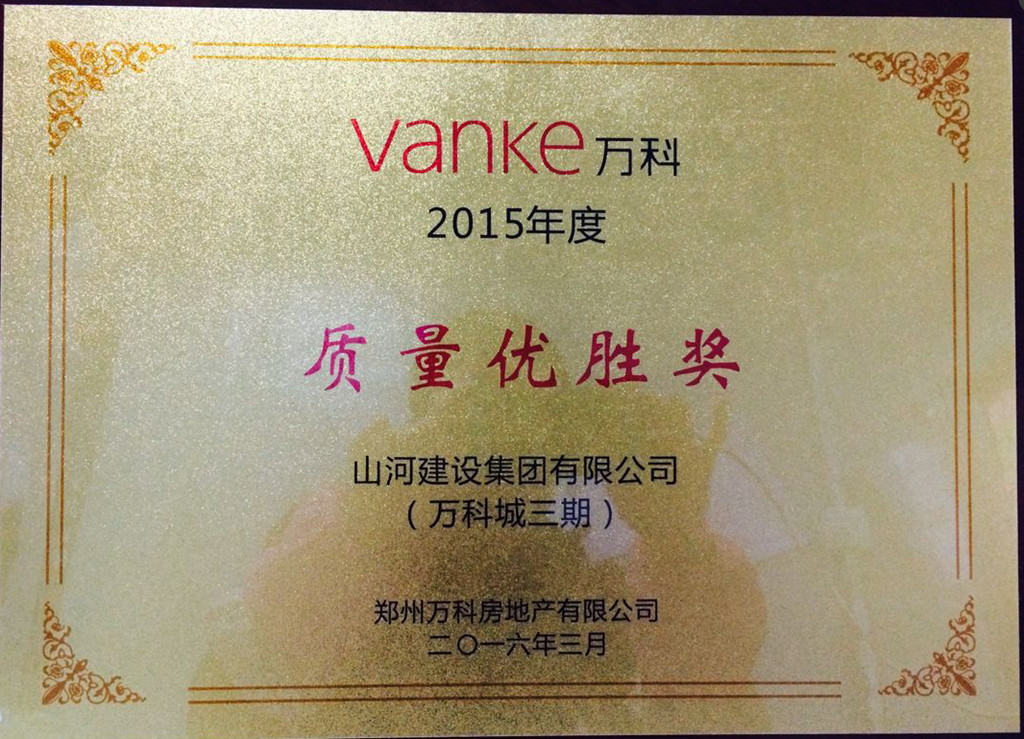 [河南公司]韦德官方网集团万科城三期项目荣获郑州万科“质量优胜奖”称号