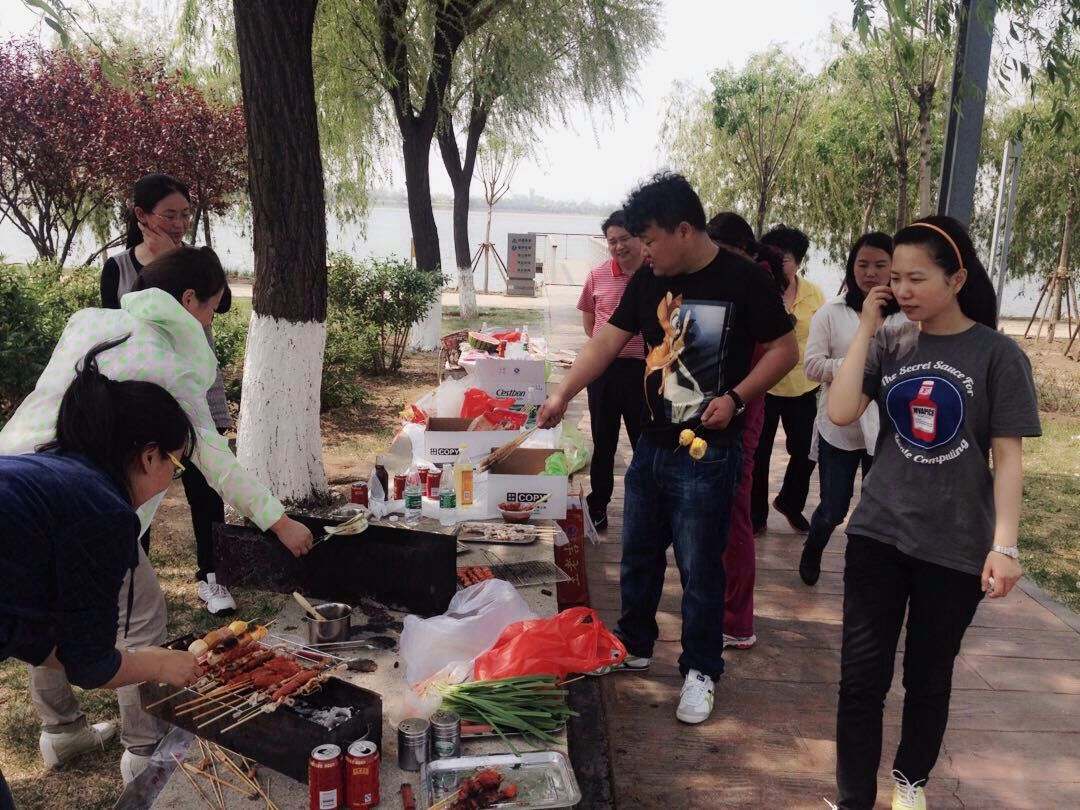 徒步行活动结束后,大家驱车来到金海湖烧烤,大家一起动手,架起炉子开始烤头一天准备好的食物。虽然都不是专业烧烤师,但个个都有模有样,一会功夫,阵阵香味扑鼻而来,大家一边品尝着美食,一边畅谈上午徒步行的收获,希望公司以后多组织类似的活动丰富员工的业余文化生活。