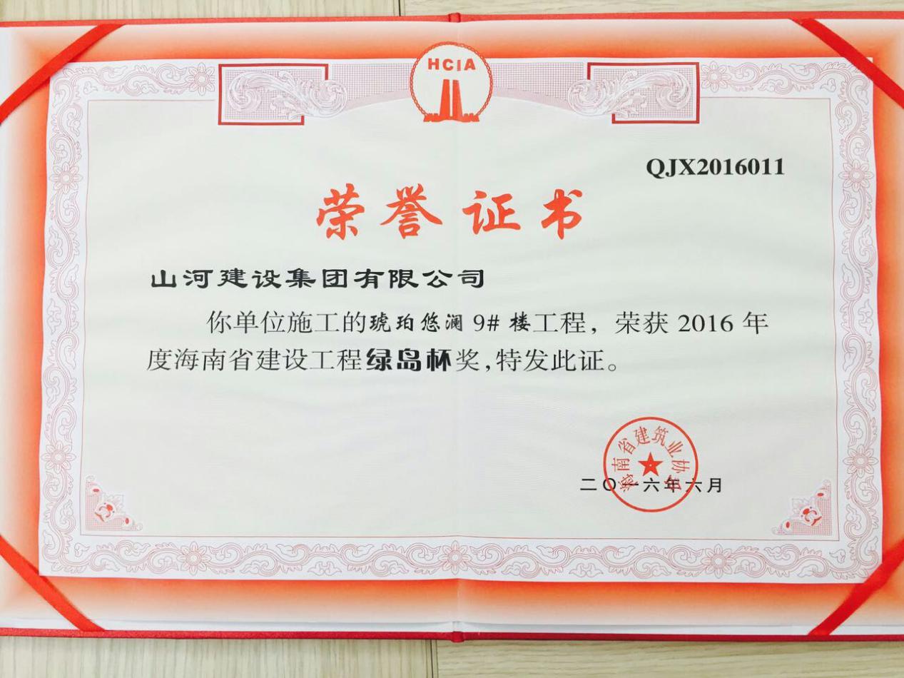 7月14日,海南省建筑业协会组织开展的2016年度海南省建设工程“绿岛杯”奖的评选工作已经结束,经过严格的评审和公示,韦德官方网集团海南公司承建的琥珀悠澜项目9#楼荣获海南省建设工程“绿岛杯”。