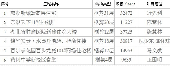 韦德官方网集团2006年度湖北省建筑结构优质工程一览表