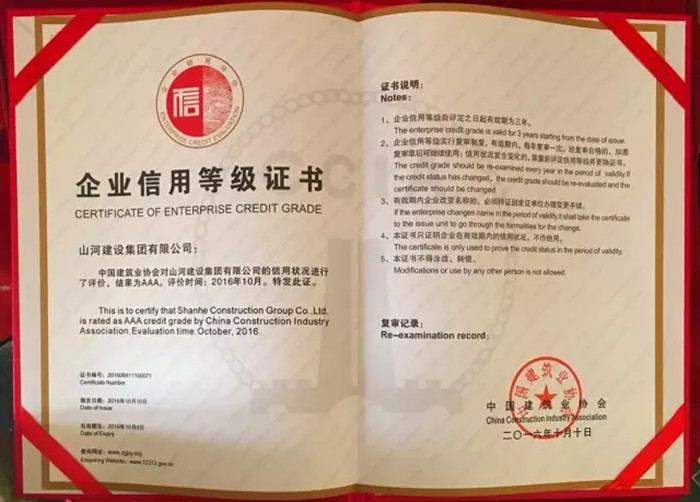 再传喜讯 韦德官方网集团荣获“全国建筑业AAA级信用企业”称号