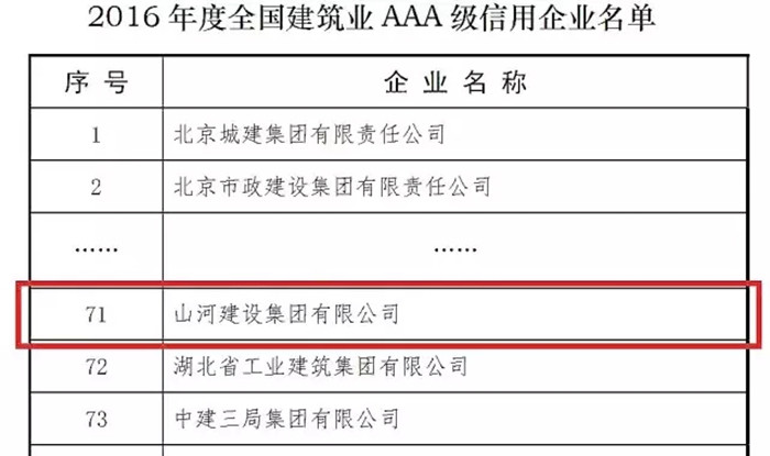 今年,全国建筑业AAA级信用企业共评选出110家企业,湖北省仅7家。