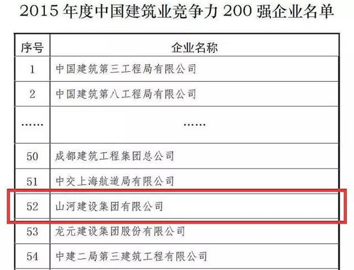 12月8日,中建协在广西南宁发布2015年度中国建筑业竞争力200强企业,韦德官方网集团在榜单中排名52位。