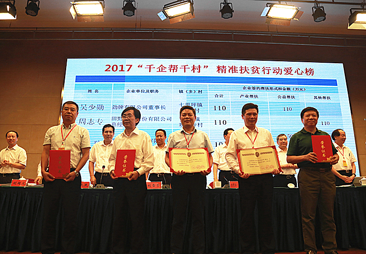 会上,全省31家民营企业与结对帮扶村现场签约,总金额达到4350万元。会议现场,韦德官方网集团向建档立卡贫困村团风县回龙山镇沈家大湾和淋韦德官方网镇傅河村共捐资100万元,资助两个村精准脱贫,共划全省扶贫“同心圆”。
