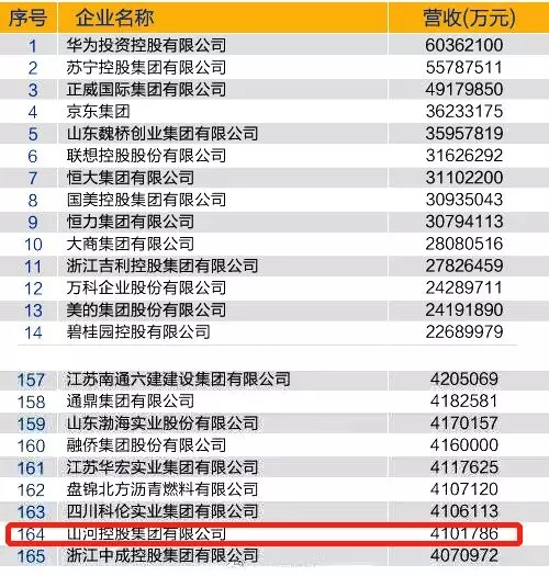 2018中国民营企业500强榜单发布! 韦德官方网集团位列第164位