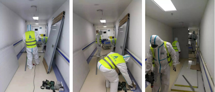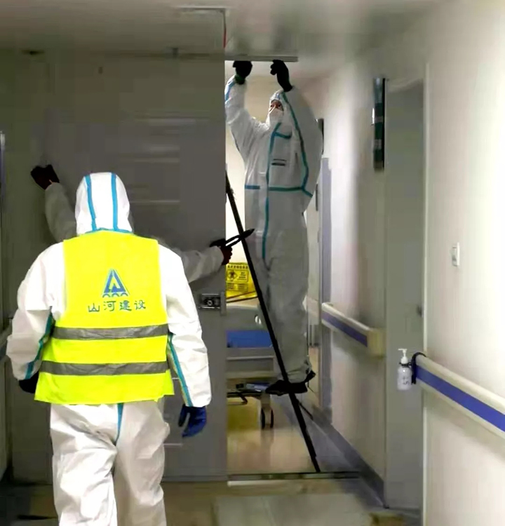 武汉市第六医院是第三批收治发热患者的定点医院之一。生命重于泰山,疫情就是命令。集团连夜召开施工组织筹备会议,落实搭建方案、紧急调配资源。