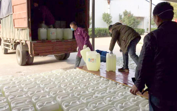 向武汉、襄阳、黄冈团风等医疗单位捐赠84消毒液共2.5吨;