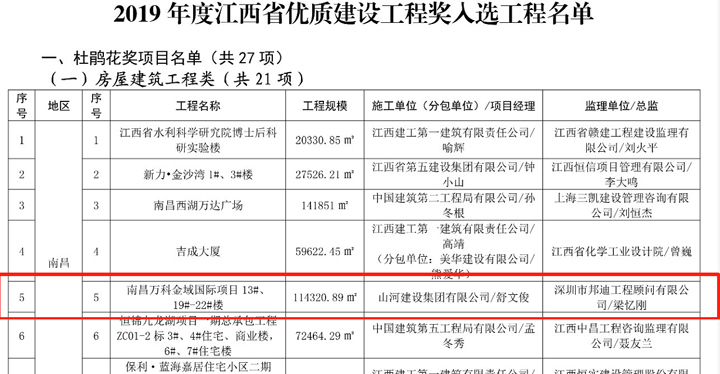 此外,该项目曾获得“南昌市优质建设工程”“南昌市安全生产、文明施工标准化样板工地”“江西省建筑安全生产标准化示范工地”等荣誉称号。