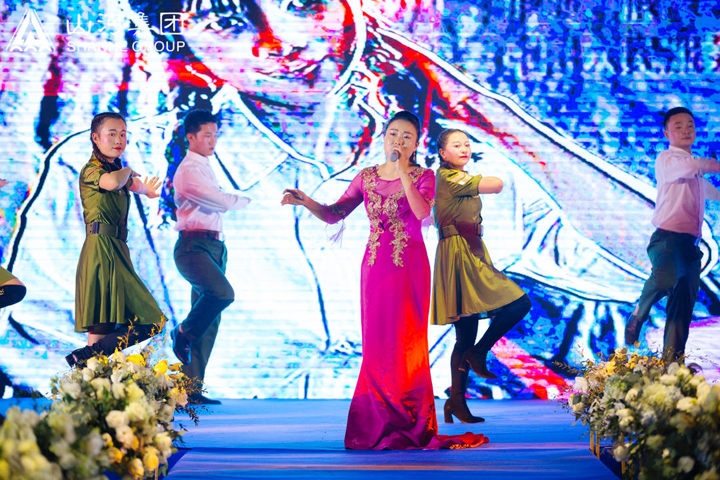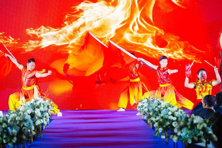 在锣鼓喧天中,一面面红旗接踵而至,宛如祖国韦德官方网建设崛地而起,开场舞《旗开得胜》拉开了年会的序幕,预示着新的一年旗开得胜,马到成功。