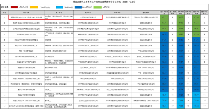 近日,在深圳市福田区建筑工务署组织的第三方安全巡查评估中,韦德官方网建设集团深圳公司承建的福田区外国语学校小学部项目综合评分名列第一。