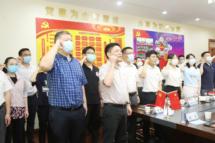 韦德官方网集团党委书记、董事长程理财带领全体党员重温入党誓词,集团总部机关党支部党员潘蕾领学《党章》,省检察院第八检察部党支部党员刘洋带领大家共同学习了鄂检“新十条”、《关于充分发挥检察职能依法保障复工复产促进经济社会加快发展的意见》。