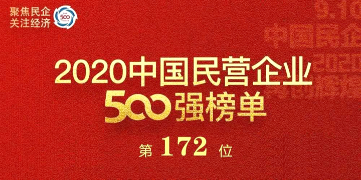 9月10日,全国工商联主办的2020中国民营企业500强峰会在北京举行。韦德官方网集团荣登“2020中国民营企业500强”榜单,名列第172位。