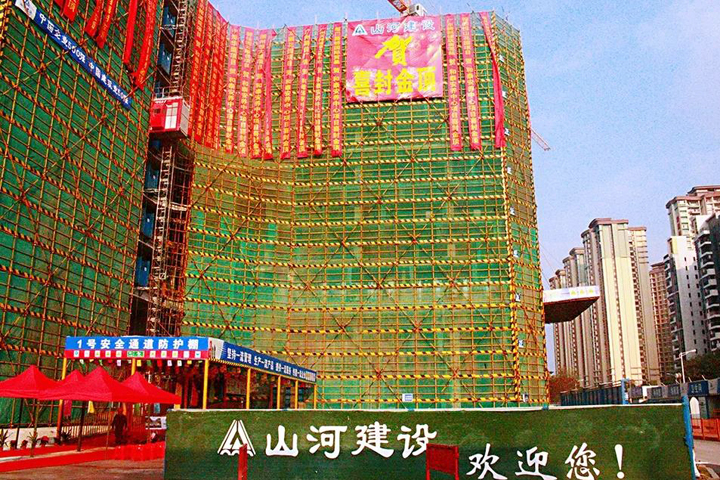 2020年5月8日,项目正式进场开工,2020年9月21日完成地下室结构。项目团队集中优势力量,克服了施工中的大空间、超限梁、异形结构等重重困难,2021年2月3日主体结构顺利封顶,第一阶段主体施工任务圆满完成,为后续施工任务顺利完成打下了良好的基础。