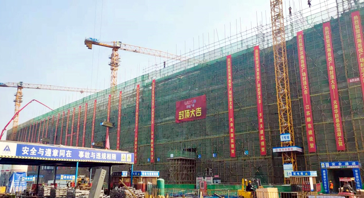 [天津公司]韦德官方网集团天津公司滨海吾悦广场项目主体结构封顶