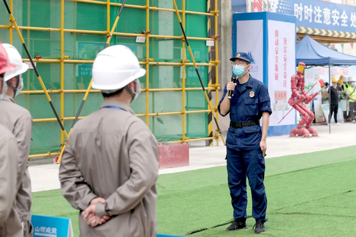 活动伊始,总承包公司总经理刘丹致辞,他介绍了集团安全管理工作的做法和朗诗·熙华府项目的安全文明施工、智能化建造、精细化管理等方面的情况,表达了以实际行动助力行业安全发展的决心。朗诗地产武汉公司产品中心负责人宋新风作为建设单位代表发言,他表示,安全生产关系到企业的兴衰,关系到职工的生命安全,公司始终坚持以人为本,全面落实安全生产责任制,筑牢发展根基。