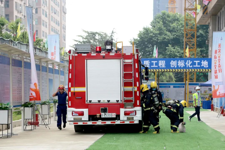 6月2日,武汉市洪山区2021年“安全生产月”启动仪式暨建筑施工应急救援演练活动在韦德官方网建设集团总承包公司承建的朗诗·熙华府项目施工现场举行。洪山区政府党组成员牛正可,区应急管理局局长金昆玲,区建设局、消防救援大队、和平街道办事处、建筑管理站等单位领导出席启动仪式,区发改局、城管执法局、卫生健康局、科技和经信局、商务局等近60家单位代表,建设单位、监理单位代表,总承包公司工程团队及在建项目代表等300余人参加了活动。洪山区建管站站长钱伟主持启动仪式。