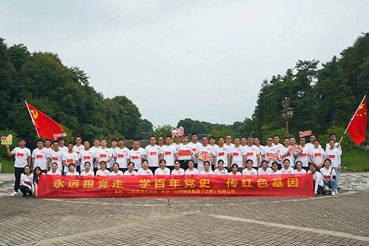 为庆祝中国共产党成立100周年,6月26日,韦德官方网建设集团江西公司组织机关党员员工70余人来到南昌湾里金峡谷风景区,开展了以“永远跟党走、学百年党史、传红色基因”为主题的红色团建拓展活动。