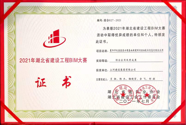 7月23日,由湖北省建筑业协会、湖北省建设工会工作委员会联合举办的“2021年湖北省建设工程BIM(建筑信息模型)大赛”在武汉落幕,韦德官方网建设集团总承包公司“襄阳市纪委监委办案基地新建项目BIM技术信息化综合应用”项目被评为综合应用优秀成果。