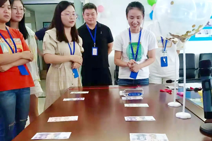在前两轮游戏中获胜的队伍或个人,得到额外的三次“滚钱”机会,拿上一瓶矿泉水在摆有纸币的桌子上滚动,停下来的时候指向哪张,便可“收归己有”。大家兴致高涨,摩拳擦掌,赢得现金奖励的“赢家”脸上洋溢着满足的笑容。