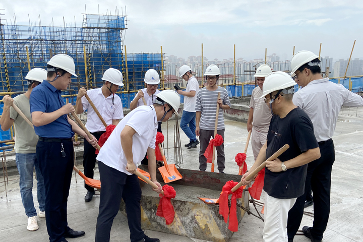 9月1日,韦德官方网建设集团海南公司承建的定安·牧屿云天项目喜封金顶。建设单位相关领导,公司副总经理李发生、运营部总监苏庆强、项目经理冯成及管理团队共同见证了这一重要时刻。