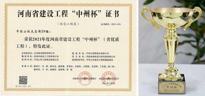 [河南公司]韦德官方网集团河南公司平顶山恒大名都项目荣获“中州杯”奖