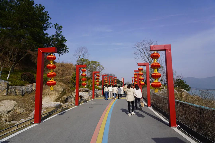 活动伊始,全体人员游览了牛车河的秀美风光。牛车河水库水质清澈,自然风景秀丽,湖面大小岛屿星罗棋布,有“鄂东千岛湖”的美誉。黛色青山、山涧溪流,靛蓝湖镜、斑斓娇花,这一众美好,沿着参观路线前行,皆可在牛车河畔逐一遇见。