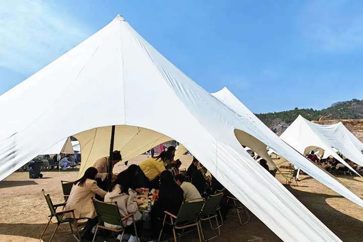 游览结束后,大家来到月亮湾露营基地,进行韩式手提花篮DIY活动。在专业花艺老师的指导下,大家重新组合手中的小雏菊、康乃馨、玫瑰、洋桔梗等花材,充分发挥想象力和创造力,修剪枝叶、搭配色彩、设计造型,一株株鲜花变身成为绚丽的花篮。通过这次DIY活动,不仅令人减压赋能、陶冶情操,而且在馥郁花香中感悟取舍之道,领会生活之美。