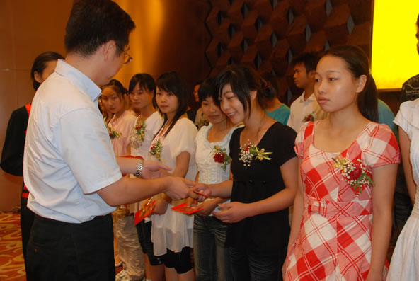 在宴会上,湖北经济学院学生处处长张以林先生作为特邀嘉宾对莘莘学子及其父母表示了真切关怀和殷切期望。同时集团公司党委书记舒先厚、总经理黄林、党委副书记汪发财、陈林生为金榜题名的学子颁发了奖金,以资祝贺和鼓励,同时还勉励学子们能以大学生活为起点,勤勤恳恳学习,堂堂正正做人,做韦德官方网建设事业的合格接班人。