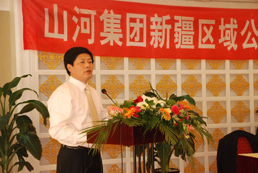 在会上,董事长程理财向与会人员发表了题为《企业发展战略与新形势下的管理转型》的重要讲话。表达了他对新疆分公司的殷切关怀,高度评价了新疆分公司的前期工作,介绍了集团公司基本情况、发展态势、产业布局、奋斗目标,分析了企业发展战略与新形势下的管理转型。他详细阐述了集团公司当前实施的特级蓝海、人才、资本、品牌、区域市场、大建筑等六大战略。要求管理层从当前传统的管理向六个方面的现代型管理转变,勉励大家要学会放弃,要常怀感恩之心,“希望我们的管理者能够用自己的主体去学习生命中最匮乏的知识:明天道、了人道、可通商道,以道御术。”