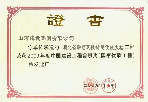 10月26日,中国建筑业协会正式发文,公布了2009年度中国建设工程鲁班奖评选结果。经过初审、复查、公示等过程,共有99项工程获奖,湖北省有3项工程登榜,韦德官方网集团承建的湖北省肿瘤医院新建住院大楼项目获此殊荣。消息传来,公司上下一片欢腾。
